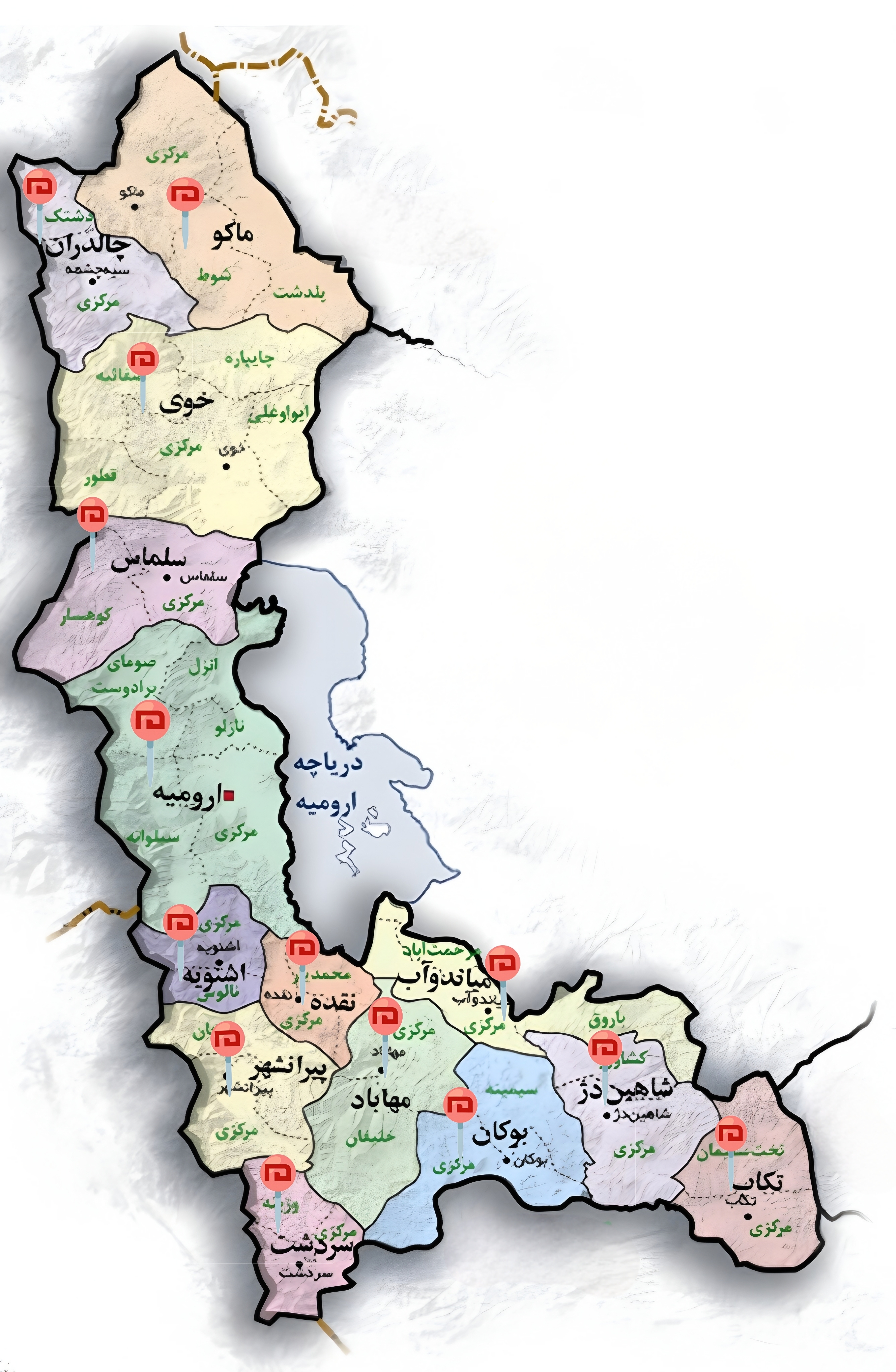 ارسال بسته و مرسوله از ارومیه به خوی/مهاباد/نقده/بوکان/سلماس/شاهین دژ/تکاب/ماکو/سردشت/پیرانشهر/میاندوآب/چالدران/اشنویه