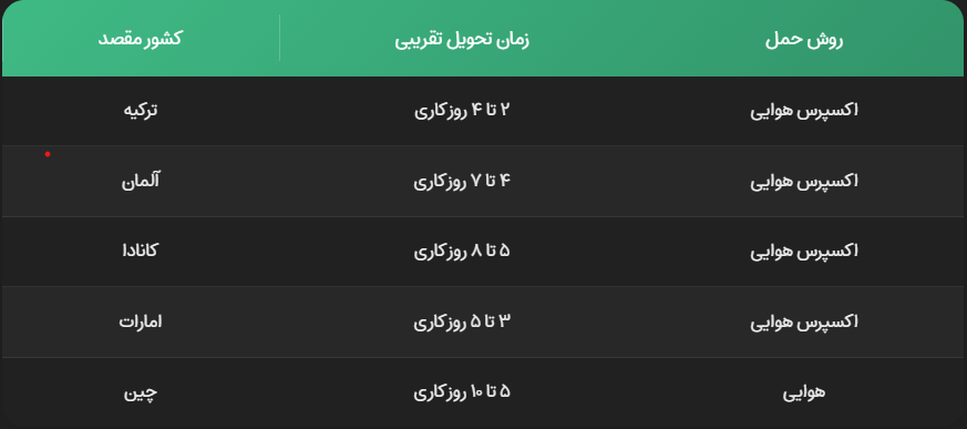 - تحویل سریع: بین ۳ تا ۷ روز کاری بسته به مقصد